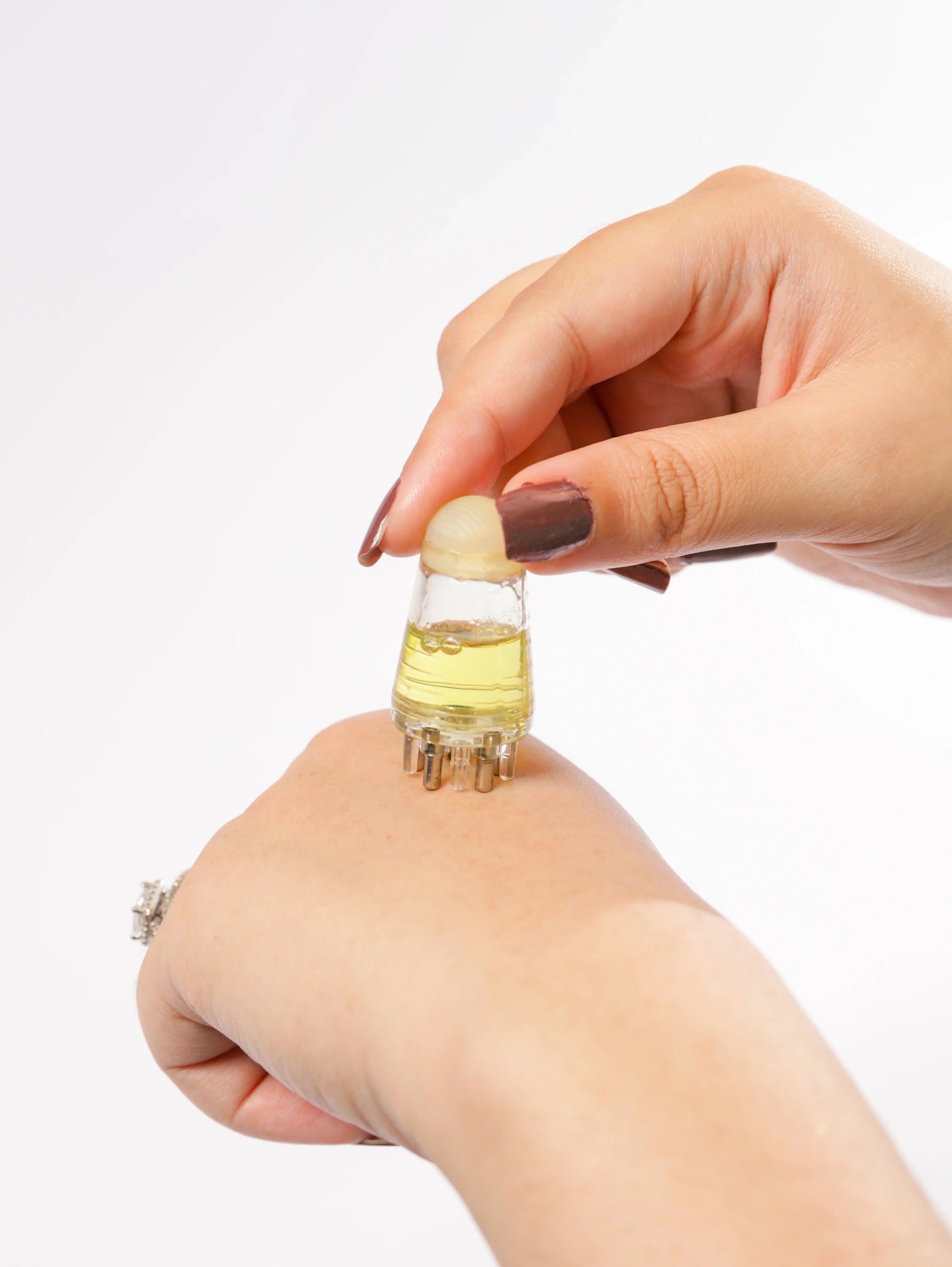 This oil applicator features a 6ml capacity and is made of plastic material. Its innovative rolling ball design ensures even dispensing of hair growth oils, tonics, serums, or other liquid scalp formulations. With a pressure release mechanism, it allows for controlled application, making it easy to target specific areas of the scalp.